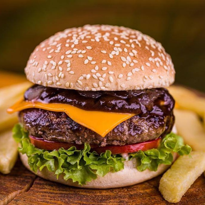 Pão de hamburguer, hamburguer bovino artesanal 130g, maionese,queijo cheddar, molho barbecue, cebola caramelizada, alface e tomate. Acompanha batata especial.