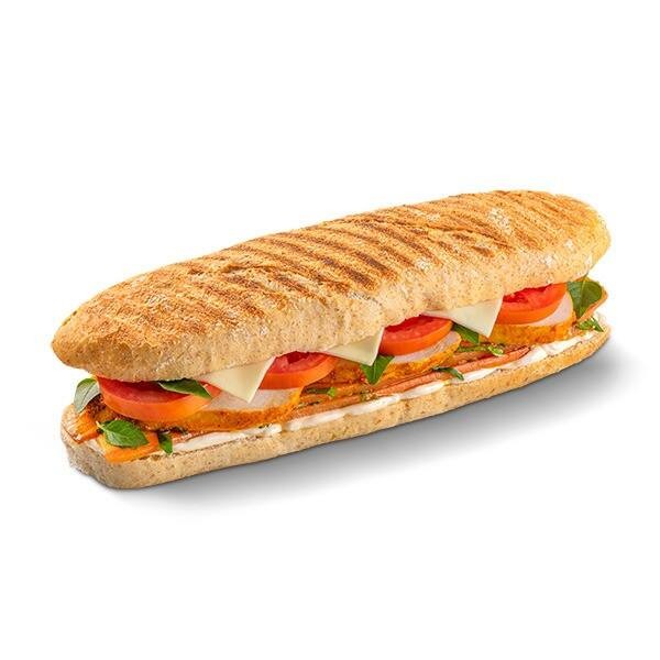 Peito De Frango Assado, Tomate, Cenoura Assada, Queijo Mussarela, Manjericão Fresco, Maionese E Pão Baguete. Não Personalizável.