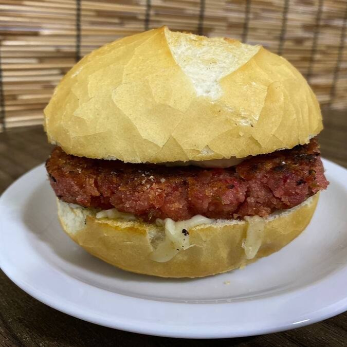 Delicioso bolinho de carne de 100g com aquele saborzinho de tempero caseiro. Sequinho por fora e suculento por dentro