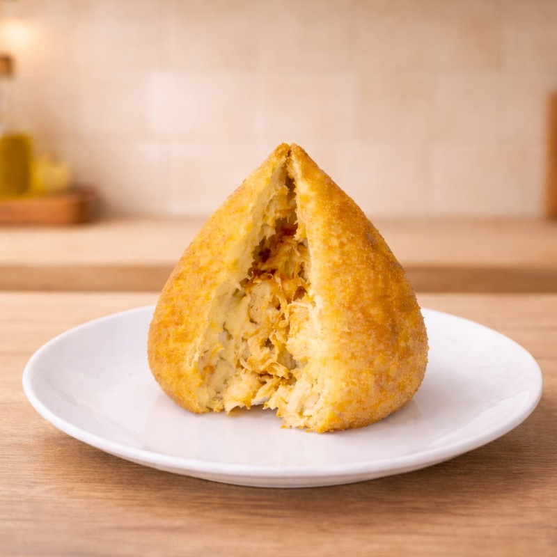 Crocante por fora e incrivelmente cremosa por dentro, a coxinha com Catupiry é um clássico irresistível. Feita com massa macia e dourada, ela envolve um recheio suculento de frango desfiado bem temperado, combinado com o toque especial do Catupiry, que derrete na boca a cada mordida. Uma explosão de sabor que conquista qualquer paladar!