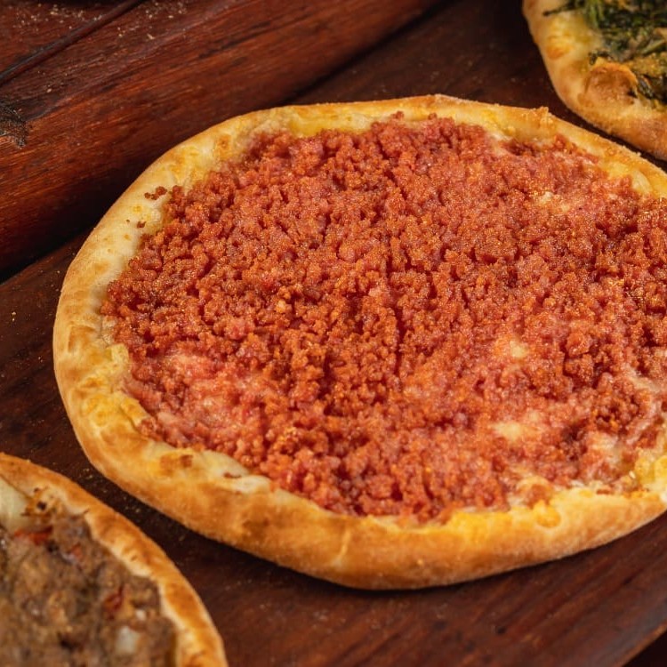 Muçarela, calabresa e cebola.