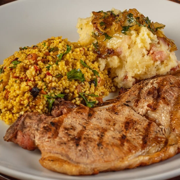 Bisteca Com Cuscuz Temperado E Purê