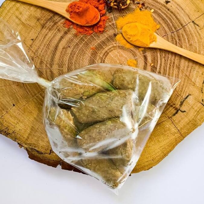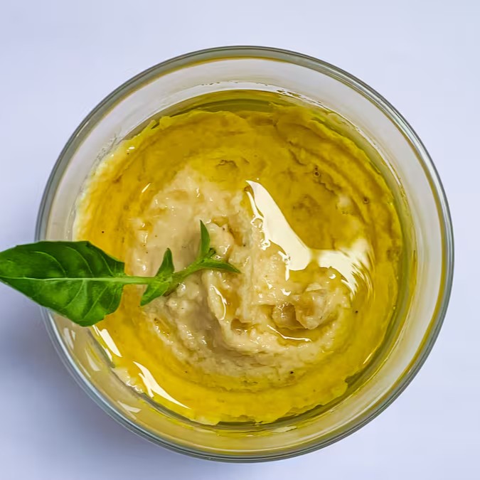 Pastinha de grão de bico, com tahine, azeite e limão.