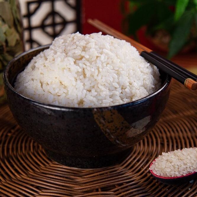 Porção de arroz branco oriental.