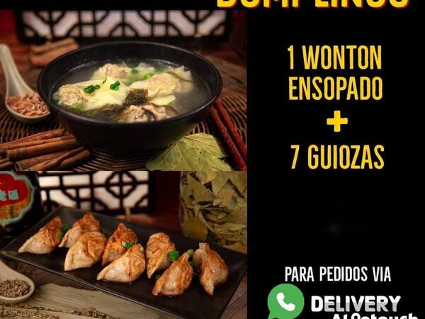 1 Wonton Ensopado + 7 Guiozas Sanxian (carne suína, ovo e camarão). Acompanha molho especial.