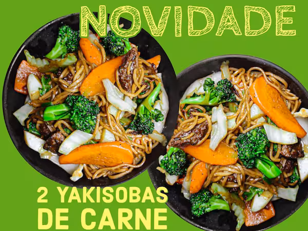2 porções de Yakisoba de Carne, Frango, Misto ou Vegetariano (cada porção com 500g aproximadamente)