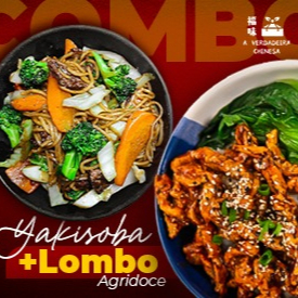 Combo com dois pratos individuais: Individual Lombo Agridoce + Yakisoba médio 600g (sabor carne, frango, misto e vegetariano)