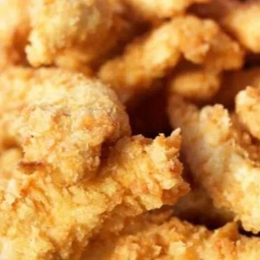 Uma pequena porção de deliciosas tiras de frango empanadas, enviado individualmente.