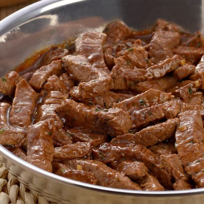 260g de muito sabor. Deliciosas alcatra em tiras, escolha qual sua preferida, com queijo, acebolada ou apenas grelhada?! Enviado individualmente.