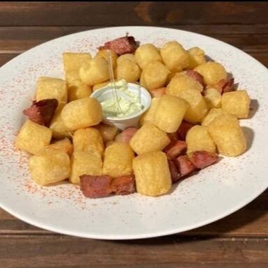 Delicie-se com nossa irresistível porção de bolinhos de aipim recheados com bacon crocante. Feitos com aipim macio e temperados com ervas e especiarias selecionadas, esses bolinhos são fritos até ficarem dourados e crocantes por fora, mantendo a cremosidade e o sabor característicos do aipim, além do toque defumado e saboroso do bacon. Uma combinação perfeita de sabores que vai conquistar o seu paladar em cada mordida.
