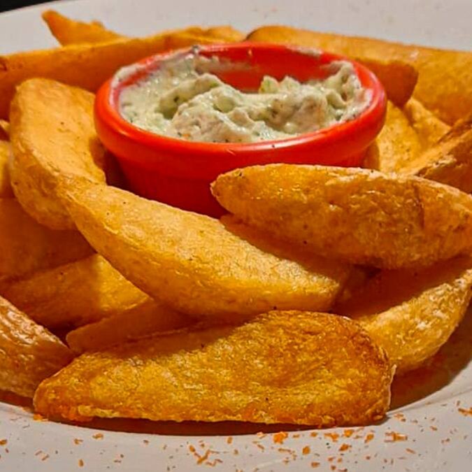 Desfrute de uma deliciosa porção de batatas rústicas crocantes por fora e macias por dentro. Feitas com batatas selecionadas e temperadas, esta porção é perfeita para compartilhar e acompanhar seus pratos favoritos, proporcionando uma explosão de sabor a cada mordida.