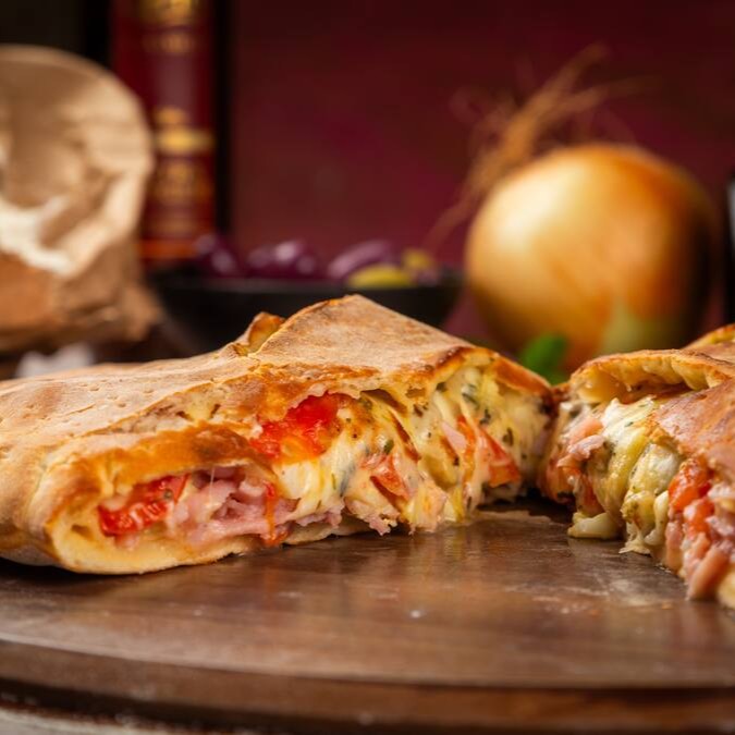 Desfrute da perfeição em cada mordida com nosso Calzone Grande. Massa macia, queijos derretidos, molho de tomate encorpado e ingredientes frescos cuidadosamente dobrados e assados. Uma experiência única para seu paladar exigente.