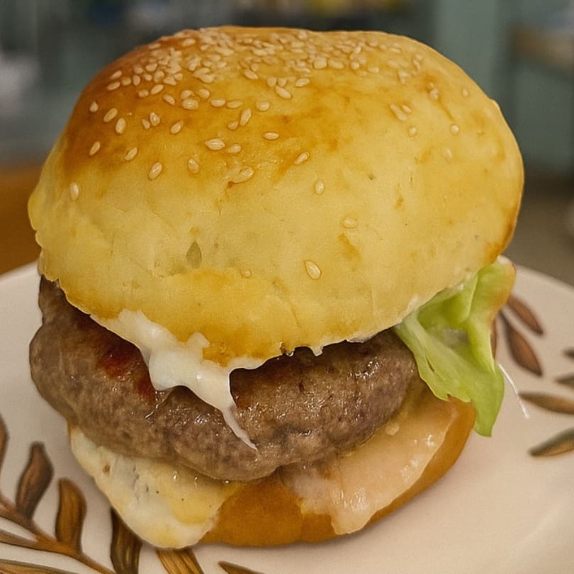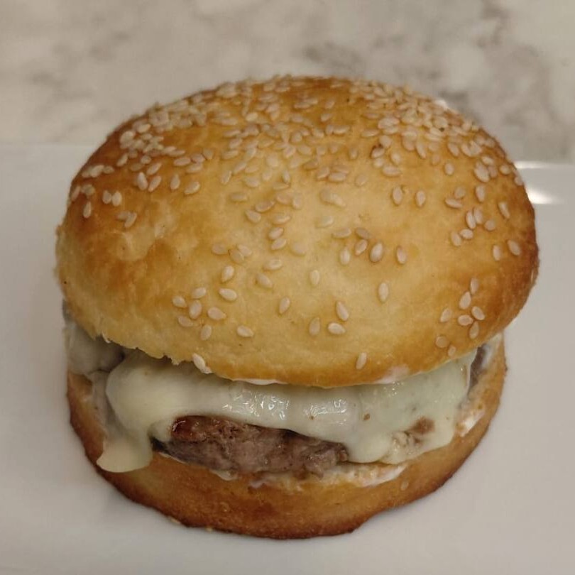 Pão de hambúrguer sem glúten, hambúrguer de carne, queijo zero lactose, alface americana, molho maionese da casa. 250g
