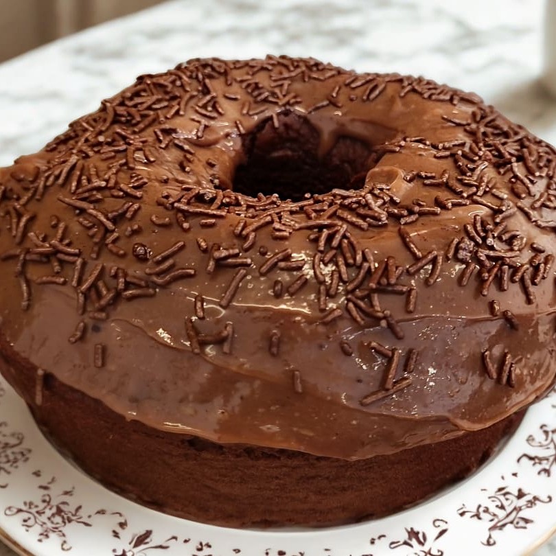 Bolo de chocolate fofinho com cobertura de leite Ninho, sem glúten sem lactose, aproximadamente 500g