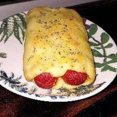 Salgado sem gluten e sem leite, recheado com duas salsichas. 120g