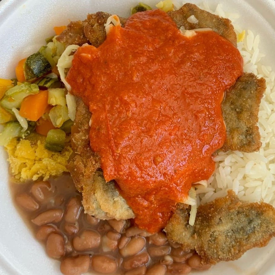 Marmita Com Aproximadamente 350gr Proteina +Ou-80gr E Acompanhamentos +Ou-270gr Arroz , Feijão, Farofa, Legumes Refogados Do Dia, bife a milanesa