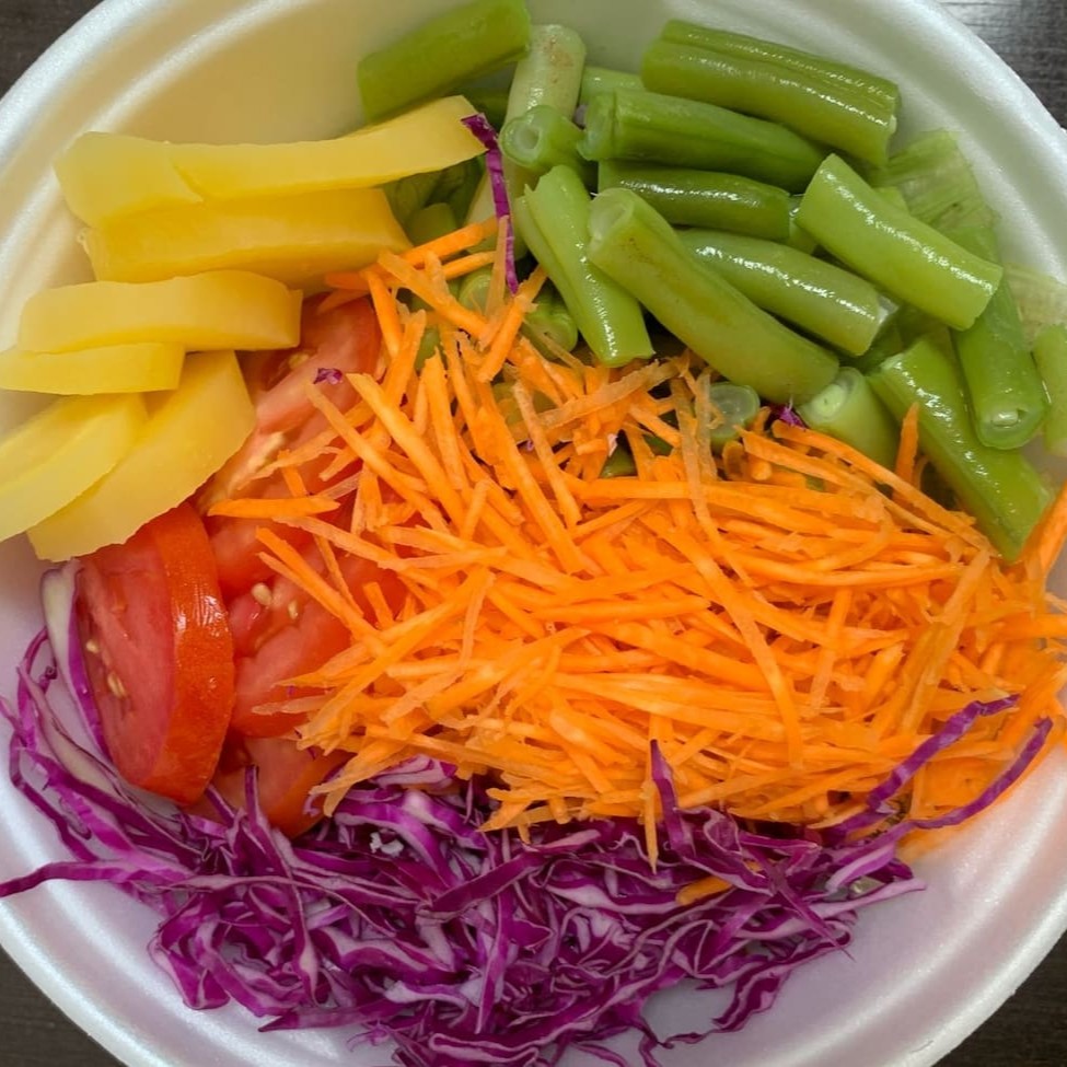 350gr aproximandamente,folhas, legumes crus e cozidos variados de acordo com o cardapio do Dia