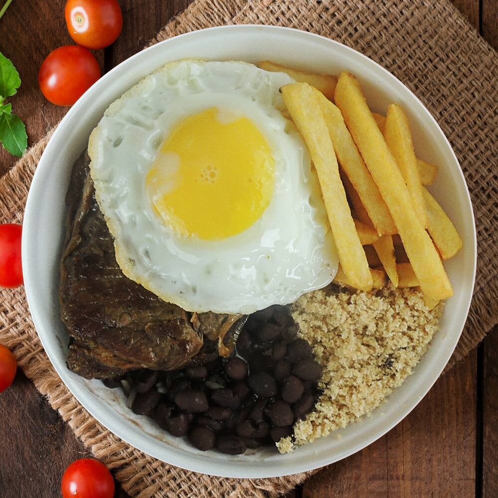 Feijão, Arroz, Farofa, Bife, Ovo, Batata Frita