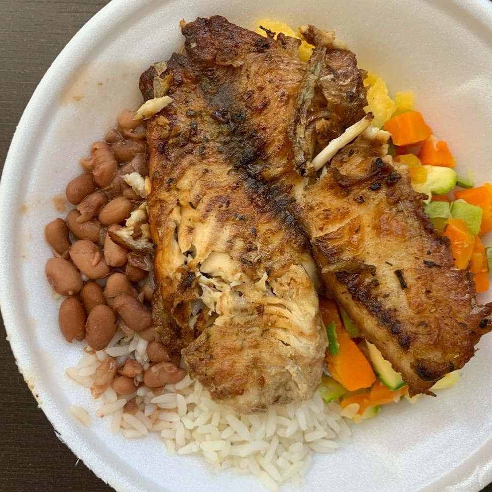 Marmita Com Aproximadamente 350gr Proteina +Ou-80gr E Acompanhamentos +Ou-270gr Arroz , Feijão, Farofa, Legumes Refogados Do Dia, tilapia na chapa