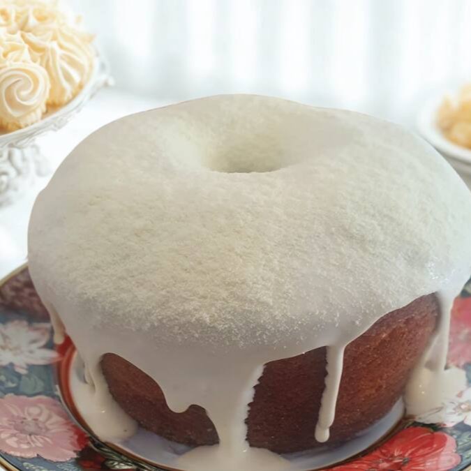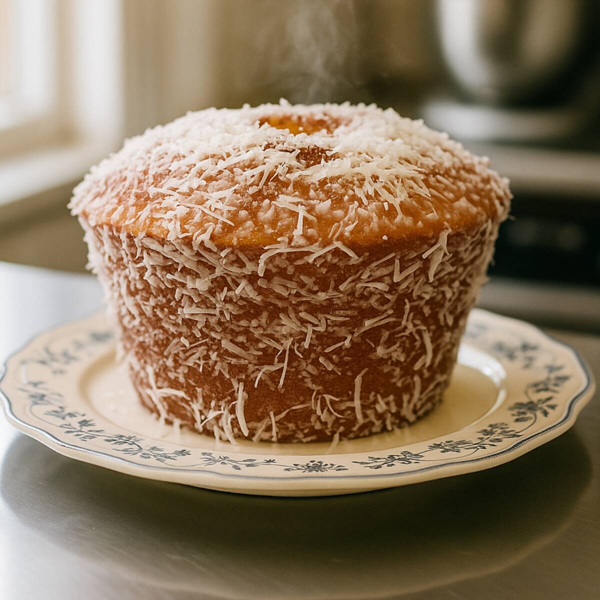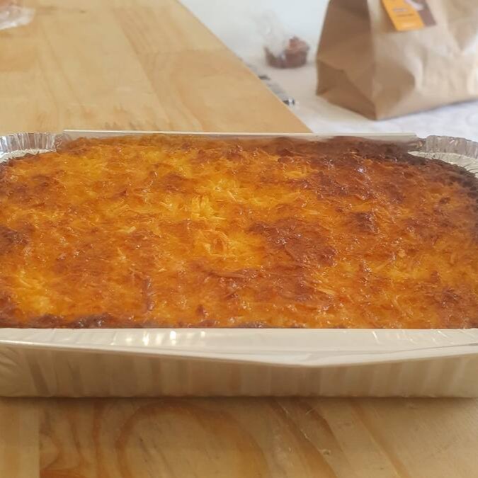 Bolo de coco coberto com uma camadinha de leite condensado e coco flocão. Aproximadamente 600g