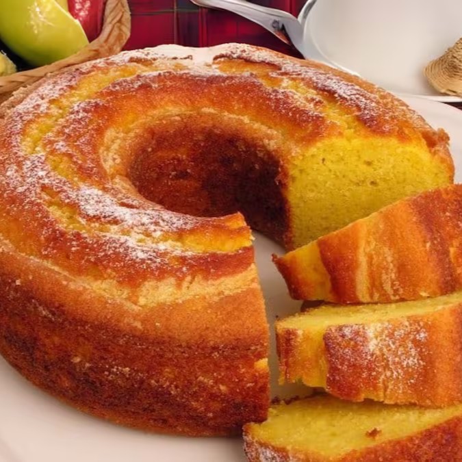 Bolo de Fubá caseiro, fofinho, cheiroso e com sabor que abraça! Perfeito pra acompanhar o café e deixar seu Dia mais leve e gostoso, sem precisar ir pra cozinha