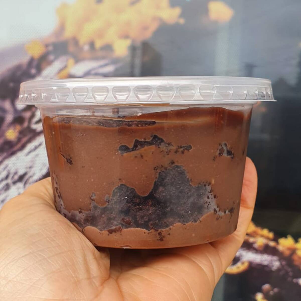 500g. Serve até 4 pessoas. Fofinha, com massa de chocolate e massa de leite.
