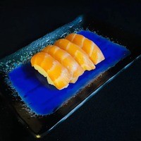 5 sashimis salmão, 5 uramaki Filadélfia, 8 hosomaki salmão, 5 niguiris salmão.