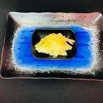 Tilápia cortado em lâminas finas com azeite e cebolinha.