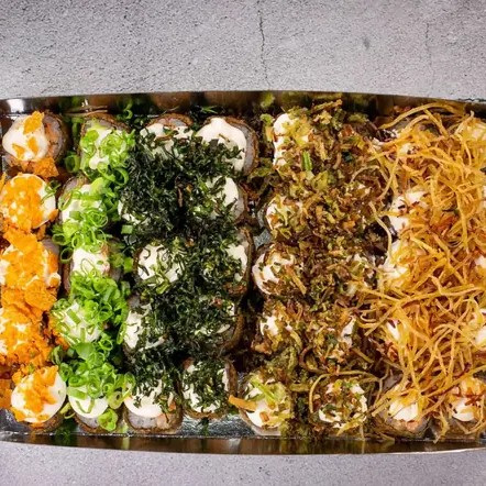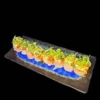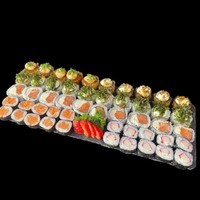 5 uramki Filadélfia, 5 uramaki crisp couve, 5 hosomaki Kani, 5 uramaki crisp batata, 10 hosomaki salmão, 5 hot crisp couve, 5 hot Filadélfia chilli.
