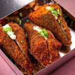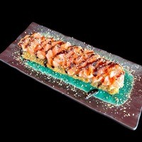 Recheado com salmão grelhado e chean chesse finalizando com pimenta agridoce e Doritos.