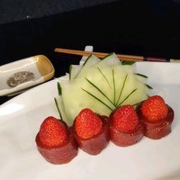 4 sashimi salmão, 4 sashimi tilápia, 4 hosomaki Kani, 4 hosomaki pepino, 4 uramaki Filadélfia, 4 uramaki crisp couve.