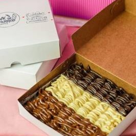 Churros simples de massa sequinha e um delicioso recheio e cobertura da sua escolha e um topping de morangos frescos. Obs: os morangos Irão em embalagem separada por conta da temperatura.