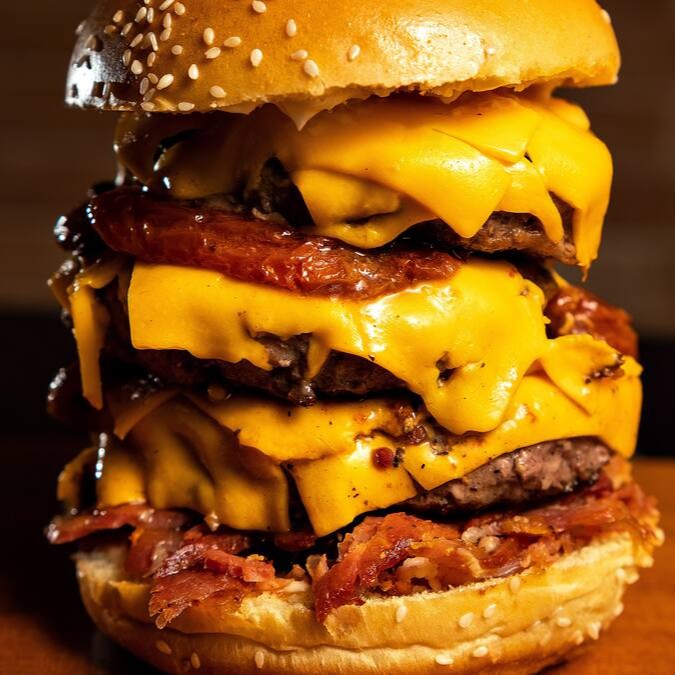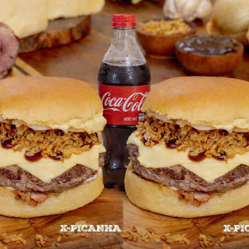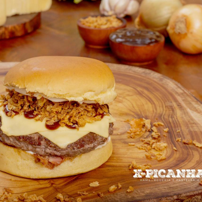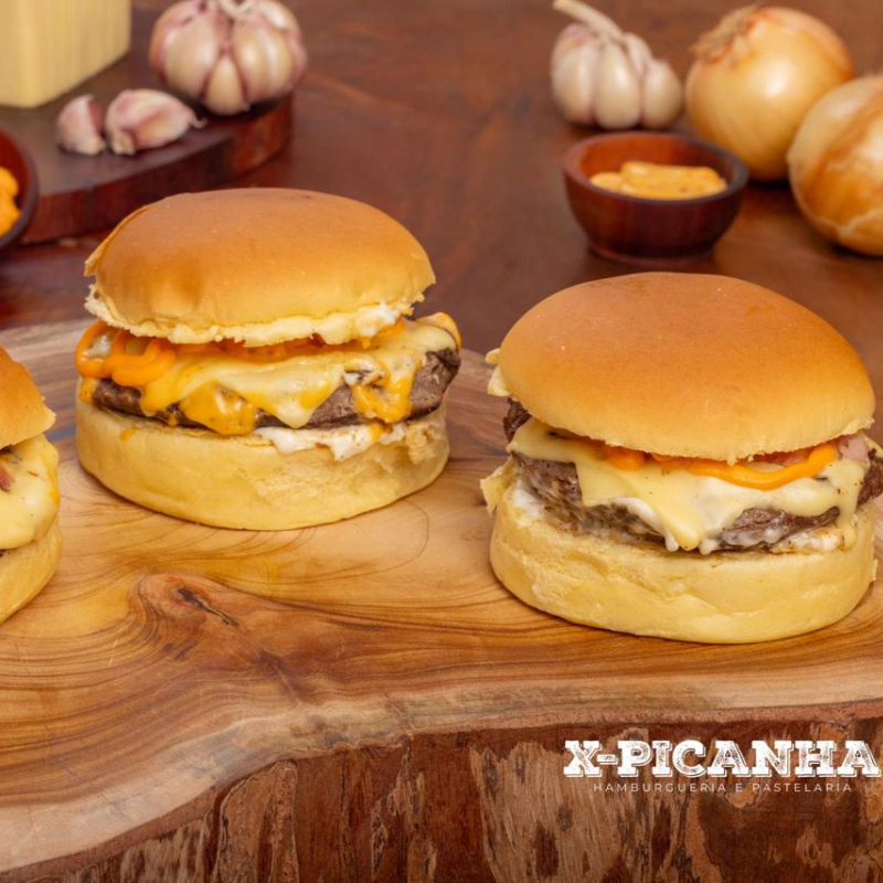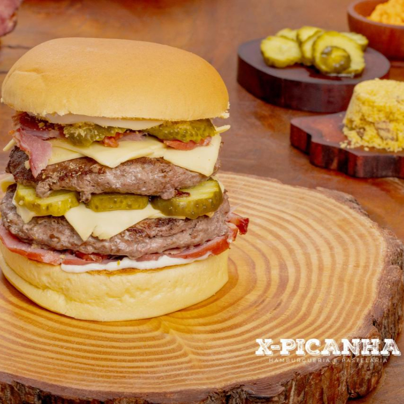 Nosso maravilhoso blend de alcatra angus de dar água na boca, como já sabem a ideia do smash são carnes mais finas, mas aqui no x picanha nos dobramos essa proposta!!! São duas carnes de 100g ao ponto coberto por queijo fatiado, nosso bacon fatiado, picles e por último, damos aquela molhada com nosso molho da casa a base de maionese artesanal de alho.