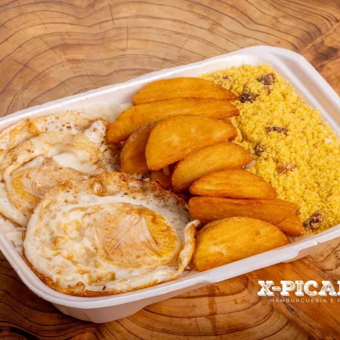 Arroz, feijao, farofa, fritas e 2 ovos fritos