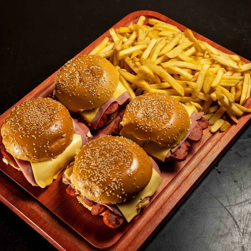 Este combo contem 4 x dog simples ( pao , maionese, salsicha e queijo) mais 500g de fritas