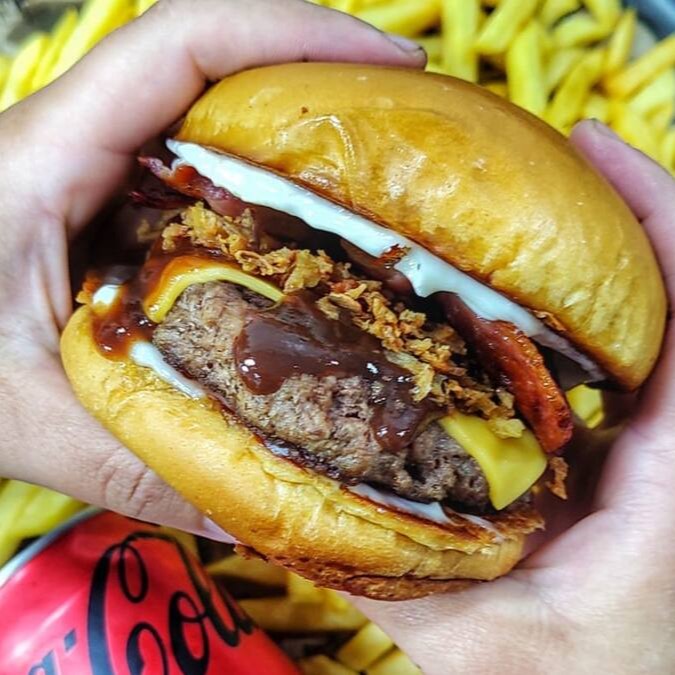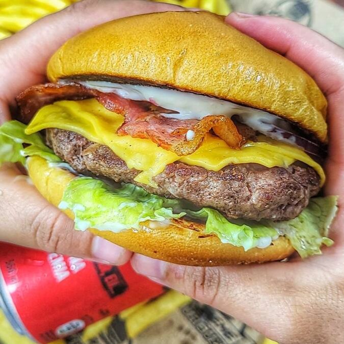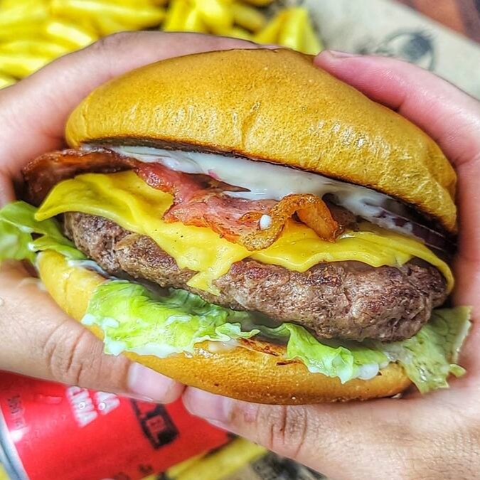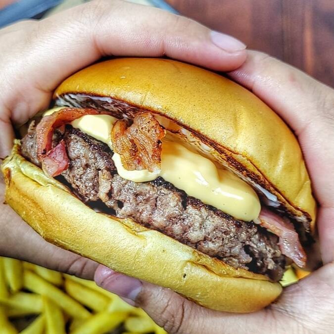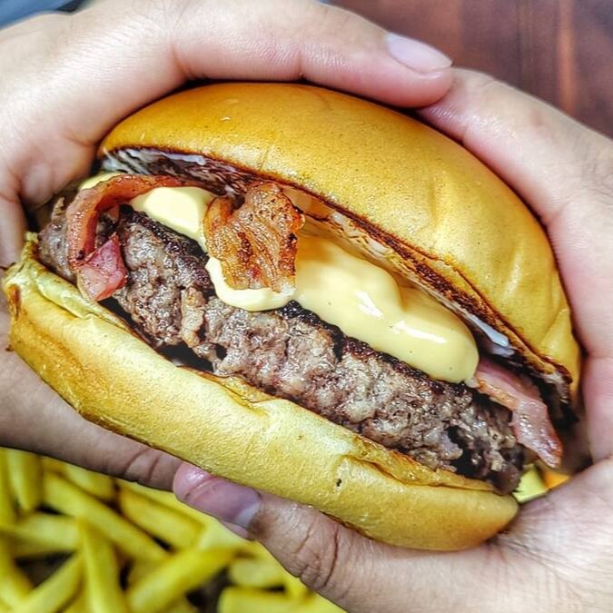 Hamburguer artesanal Bovino de 150gr acompanhado de queijo prato derretido, bacon, Cebola roxa, tomate, alface americano e Maionse xtreme e o nosso delicioso pão de brioche selado na manteiga.