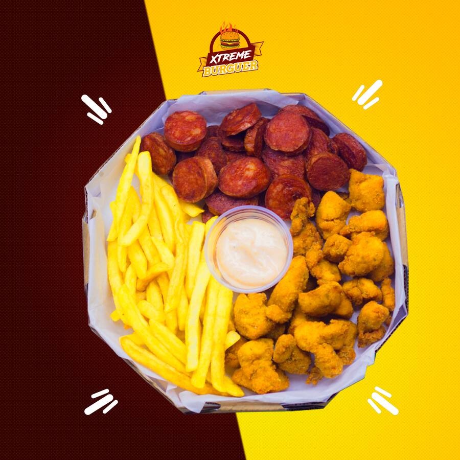 Não encontrou o combo do jeito que precisa ? Então Monte o seu combo de porção aqui! Esse tamanho serve de 3 a 4 pessoas e acompanha 3 molhos Xtreme.