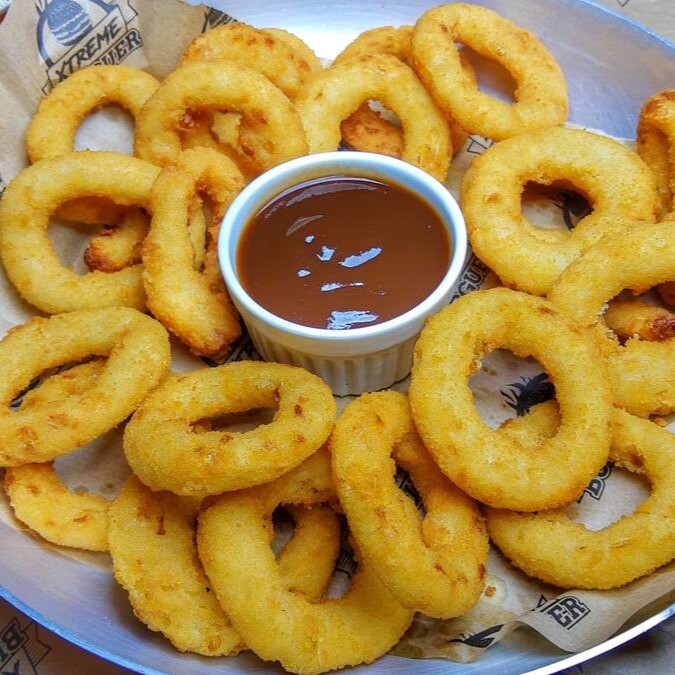 Porção de 500gr Anel de cebola e acompanha molho Barbecue.