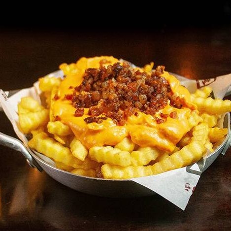 500gr de batata crinkle com creme cheddar e generosos pedaços de bacon.