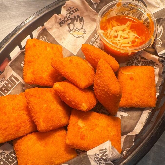 10 deliciosas almofadinha de queijo gouda, com um delicioso molho de tomate com mussarela.