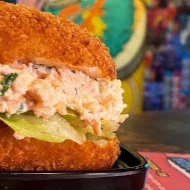Salmão fresquinho com creamcheese e alga nori, num pão crocante artesanal feito à base de gohan empanado na panko e frito
