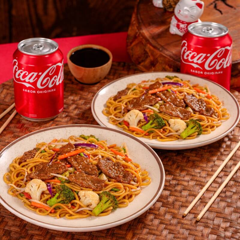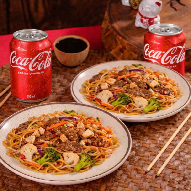 2 potes médios (350g cada) Yakisoba de Carne, nosso clássico macarrão oriental, com carne, acompanhado por legumes frescos, finalizados com molho à base de shoyu e nosso tempero exclusivo. Contém cenoura, brócolis e acelga + 2 Coca-Cola latas (350ml).**fotos meramente ilustrativas - devido ao acondicionamento em embalagem e transporte o produto poderá não ter a mesma aparência da foto. CONTÉM: CEBOLA E REPOLHO ROXO