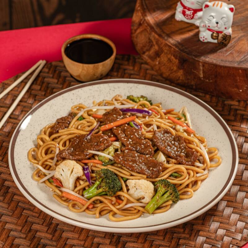 Nosso clássico macarrão oriental, com carne bovina, acompanhado por legumes frescos, finalizados com molho à base de shoyu e nosso tempero exclusivo. Contém Carne Bovina, acelga, brócolis, cenoura, couve-flor e shoyu.**fotos meramente ilustrativas - devido ao acondicionamento em embalagem e transporte o produto poderá não ter a mesma aparência da foto. CONTÉM: CEBOLA E REPOLHO ROXO
