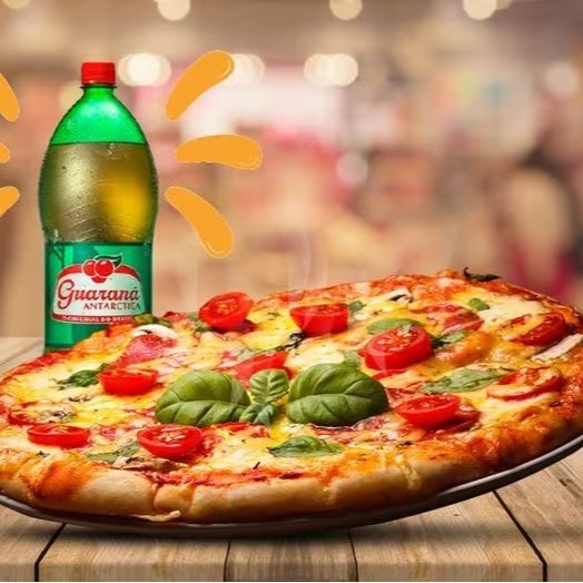 Pizza Grande + Broto Doce + Guaraná 2 Litros. Guaraná: Pode ser: Refrishow, Ternura, Refriko, Jujuba ou Cini, de acordo com o estoque da loja.