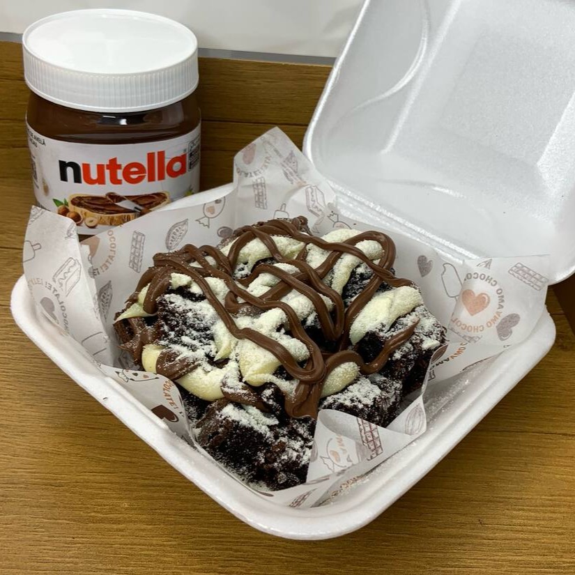 Deliciosos pedacinhos de brownies distribuídos em camadas junto com Ninho cremoso e Nutella.