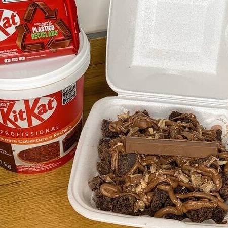 Nosso brownie delicioso com creme Original Kitkat e chocolate Kitkat distribuído sobre os bites, siiim ele chegai aí pra você igualzinho está na foto, e deixa eu te contar um babado: são 300gr tá amoh! Se você tá com desejo de doce, nós temos o pedido certo!