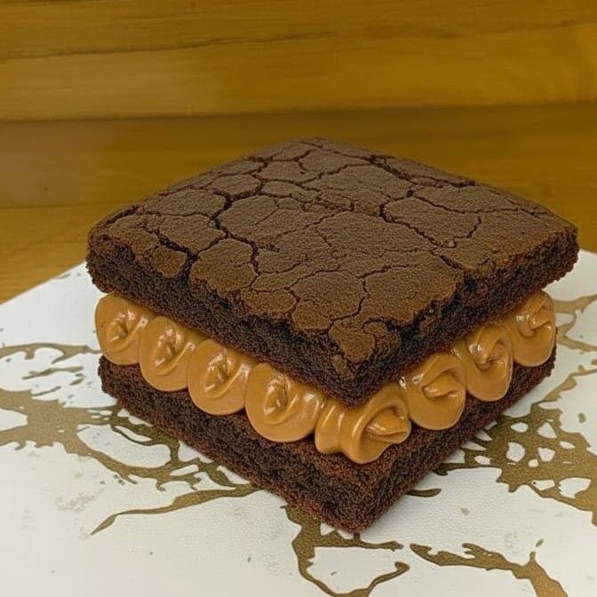 Brownie com massa artesanal a base de chocolate nobre recheado com nosso creme delicioso de doce de leite, absurdamente viciante.