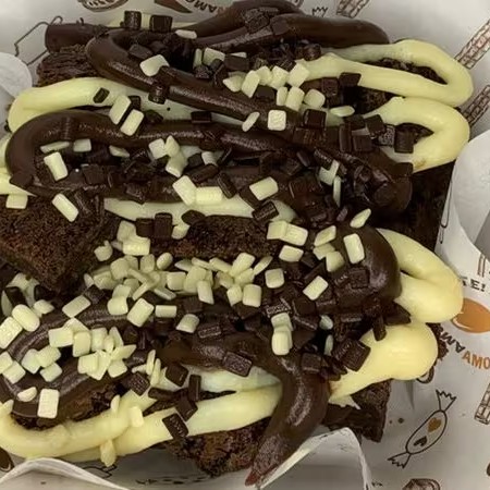 Nosso tradicional brownie artesanal, coberto generosamente com cobertura deliciosa de brigadeiro belga. Totalmente Irresistível.