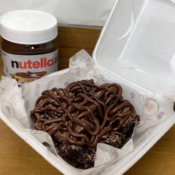 Nosso tradicional brownie artesanal, coberto generosamente com cobertura de brigadeiro cremoso, Nutella e crocante de amendoim e avelãs. Totalmente irresistível!!