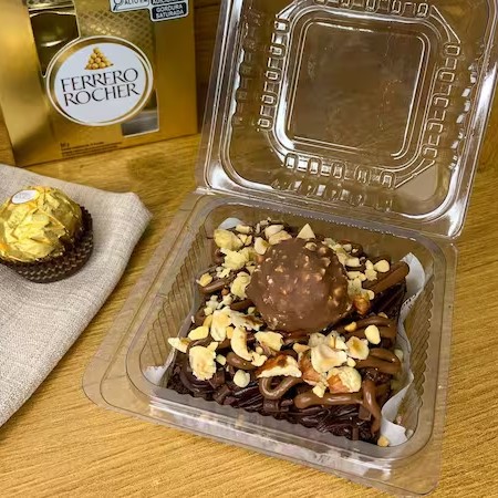 Nosso tradicional brownie artesanal, coberto generosamente com creme de Ninho, um delicioso Ouro Branco e Nutella. Totalmente Irresistível.
